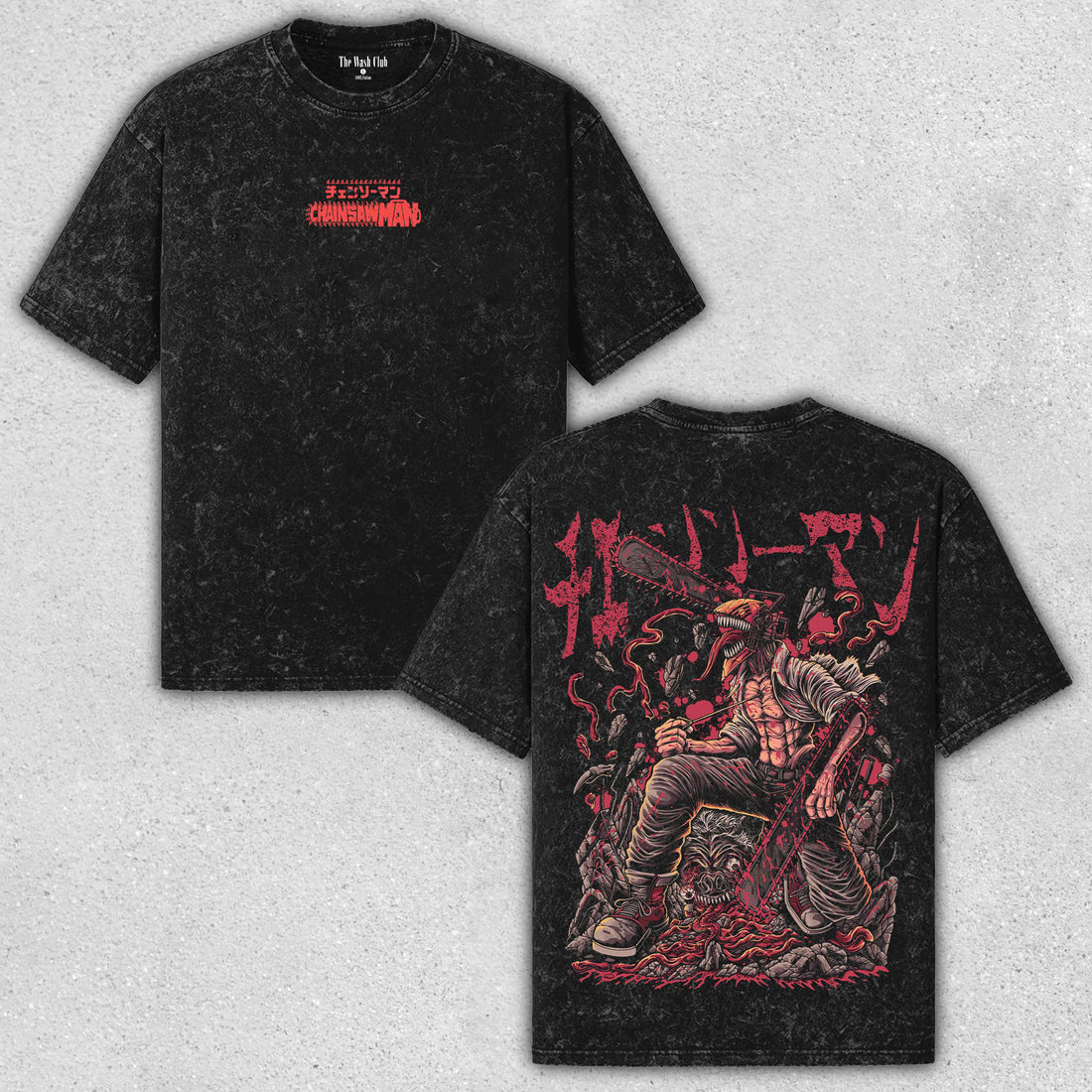 Denji Chainsaw Man - Epic Anime Graphic Washed Tee with Dynamic Devil Design