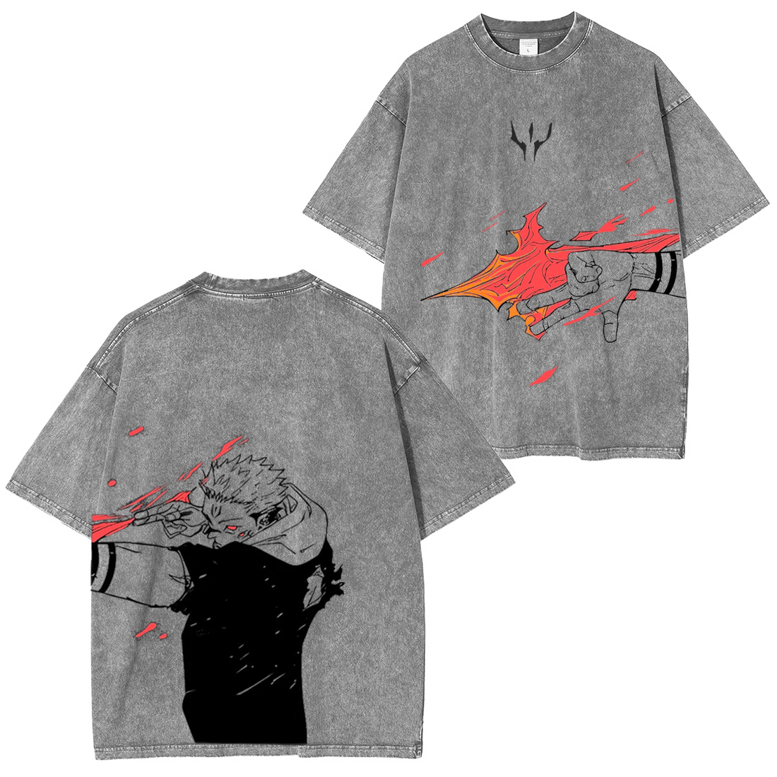 Jujutsu Kaisen Anime Acid Washed Oversize T-Shirt Yuji Itadori Anime Tee Gift For Him