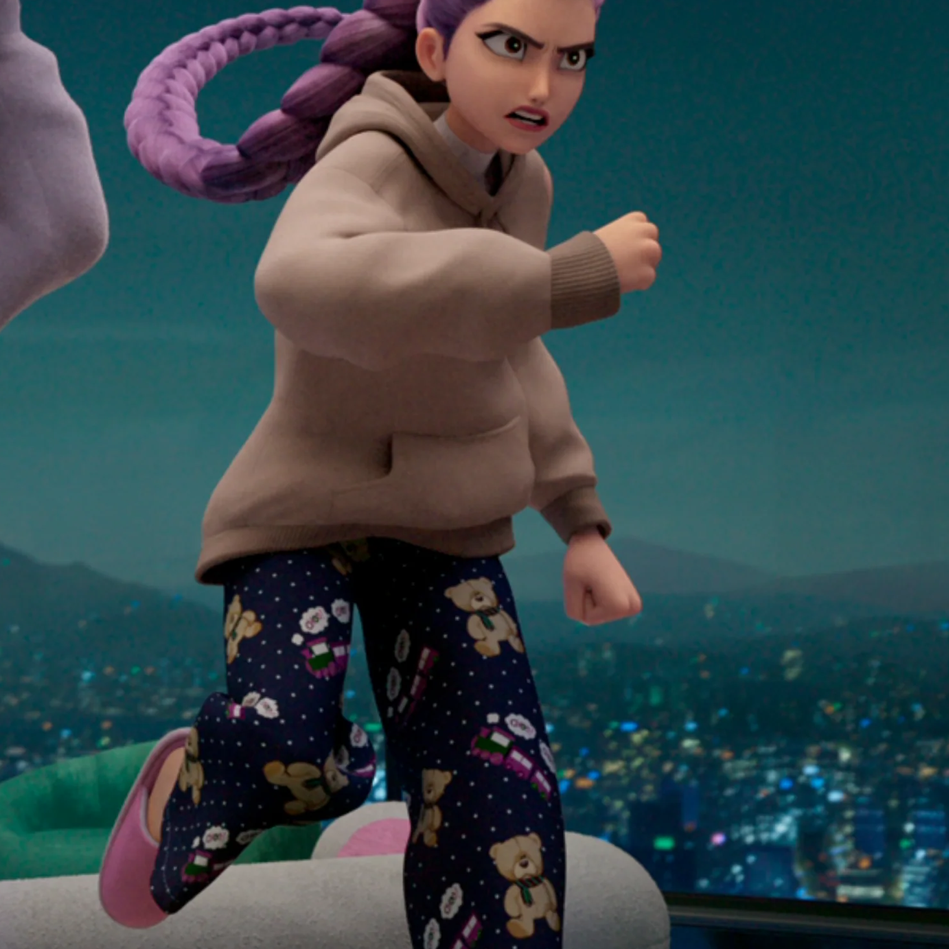 Catch some Z's — or demons — in the KPop Demon Hunters Rumi Choo Choo Pajama Pants. Featuring playful, comfy vibes straight from Rumi's signature style, these pajama pants bring cozy softness and fan-favorite flair to your downtime. Whether you're lounging at home or having a sleepover with your squad, they're the perfect pick for every true fan.